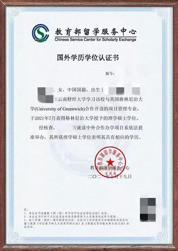 学员完成规定课程学习,成绩合格,并按要求完成学位论文,可申请授予英国格林威治大学项目管理理学硕士学位或房地产理学硕士学位。所获学位可办理中国教育部留学服务中心学历学位认证。